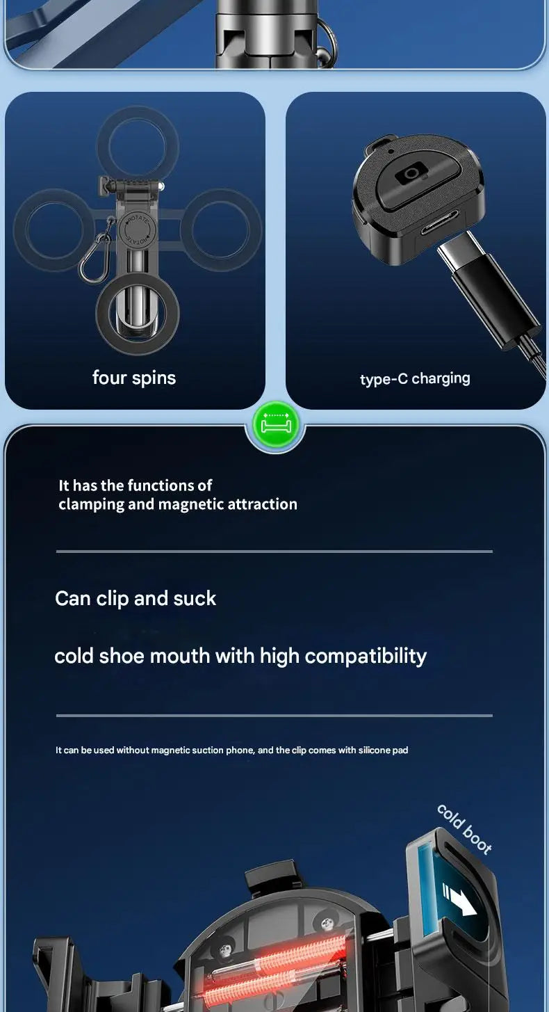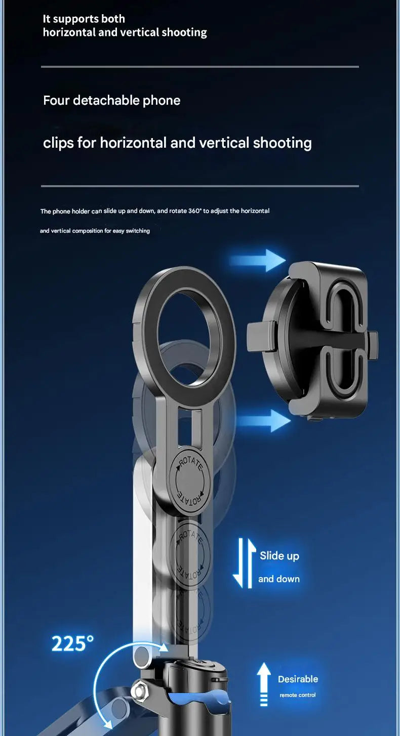 Take your photography and video experience to the next level with the Upgraded Multi-Function Foldable Magnetic Phone Holder. Perfect for selfies, vlogs, group photos, and professional-style shoots, this all-in-one gadget combines portability, versatility, and convenience in one compact device.