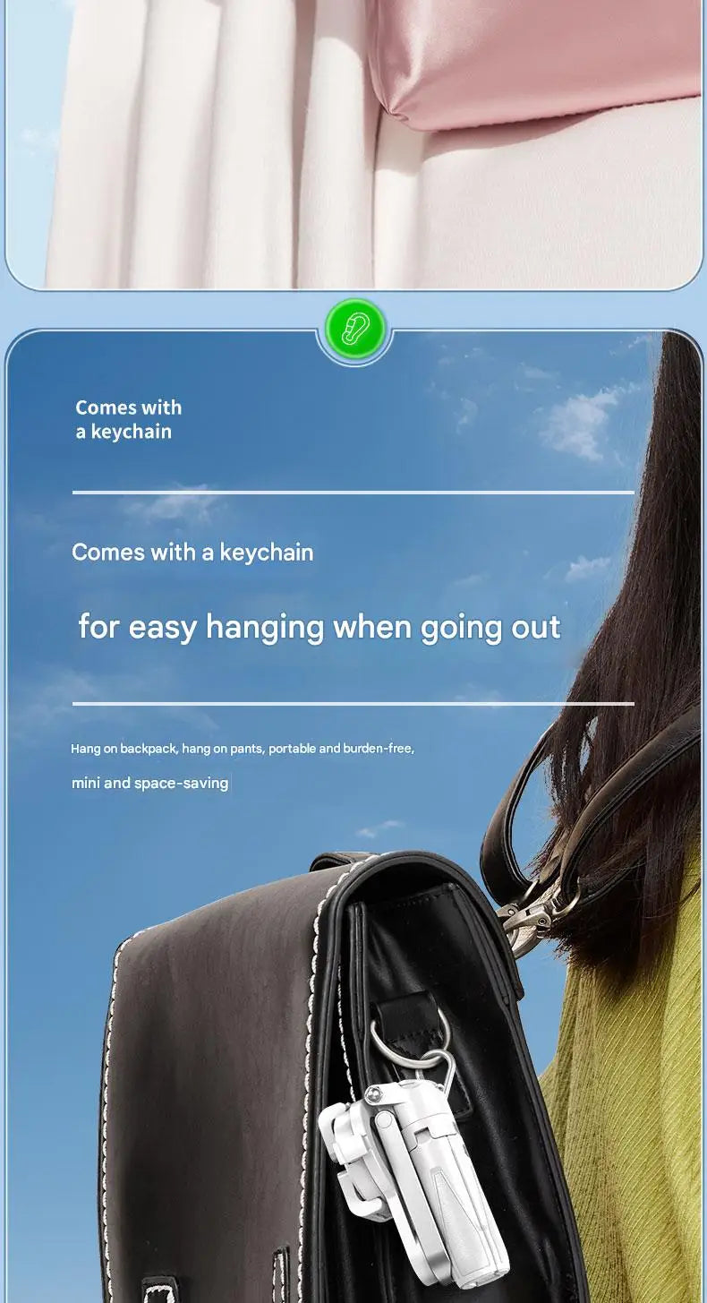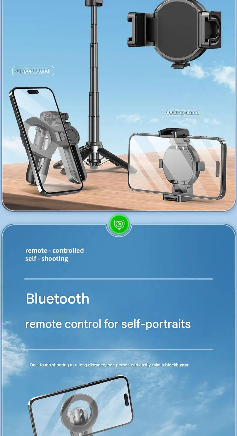 ✨ Selfie Stick Function: Extendable arm for perfect selfies and wide-angle shots.